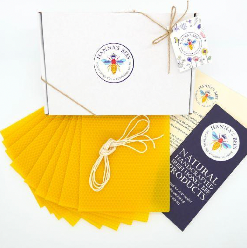 Create tall, elegant beeswax candles for your table using this kit from Hanna's Bees, in Cork. This classic kit contains everything you need to make nine hand-rolled dinner candles — pure, natural, and beautiful for everyday or special occasions.