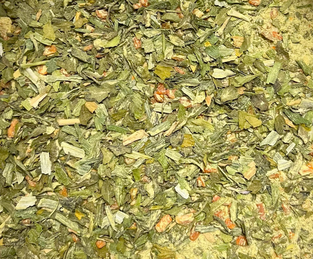 Ingredients: sea salt, carrot, onion, parsnip, chive, kale, parsley, lovage root + leaves, garlic, coriander, turmeric, fennel, fenugreek, caraway, ginger |